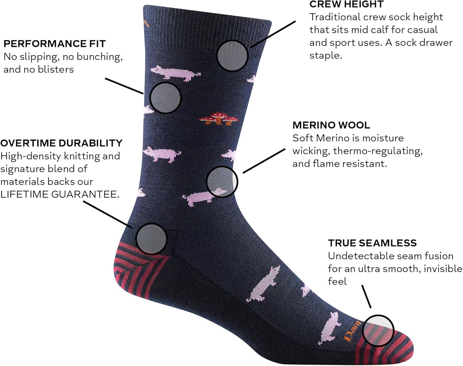 Darn Tough Vermont, Mens, Truffle Hog Crew Lightweight Socks(Midnight)