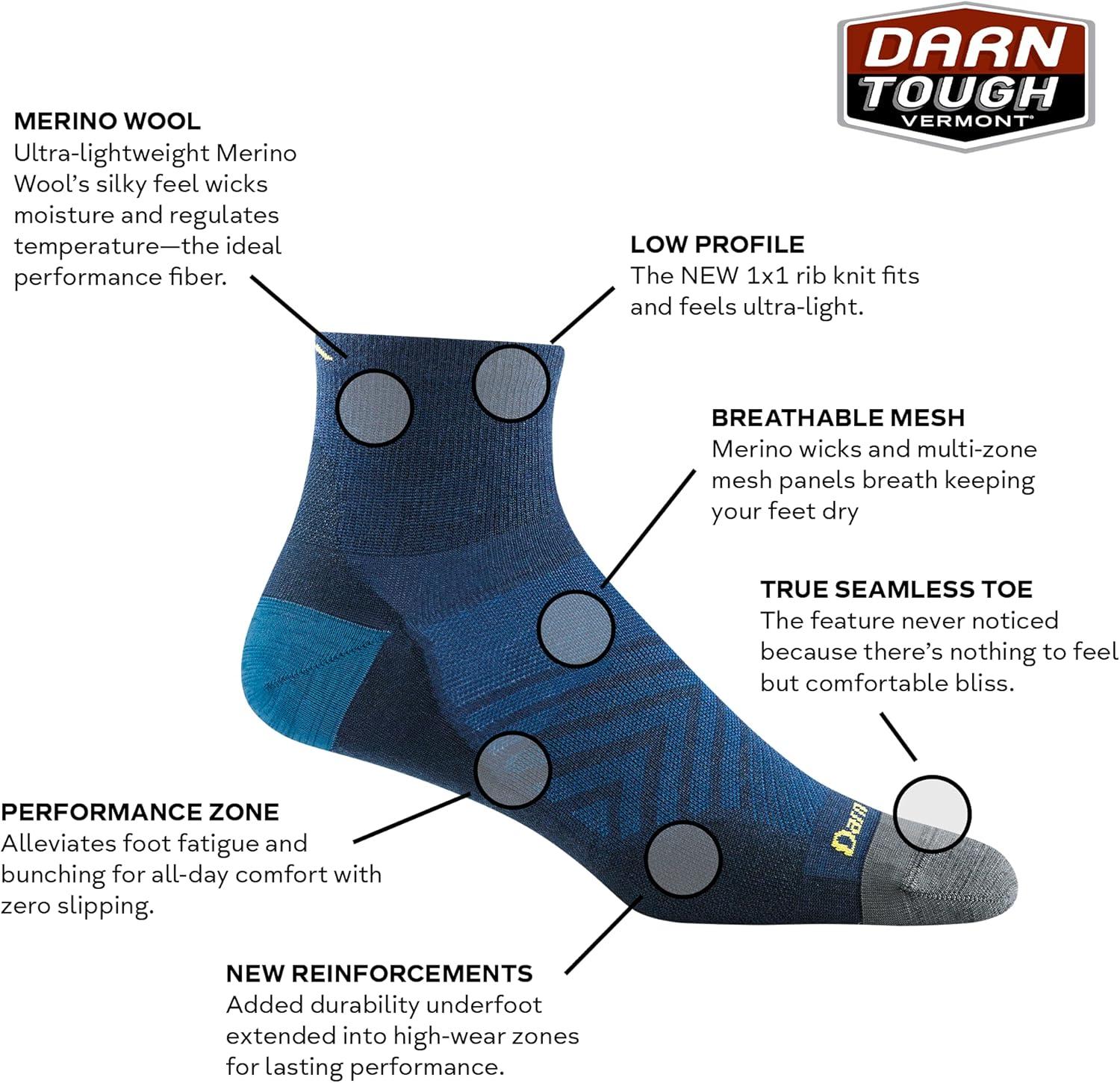 Darn Tough Men’s 1/4 Ultra-Lightweight Run Sock (Style 1034) -(Eclipse)