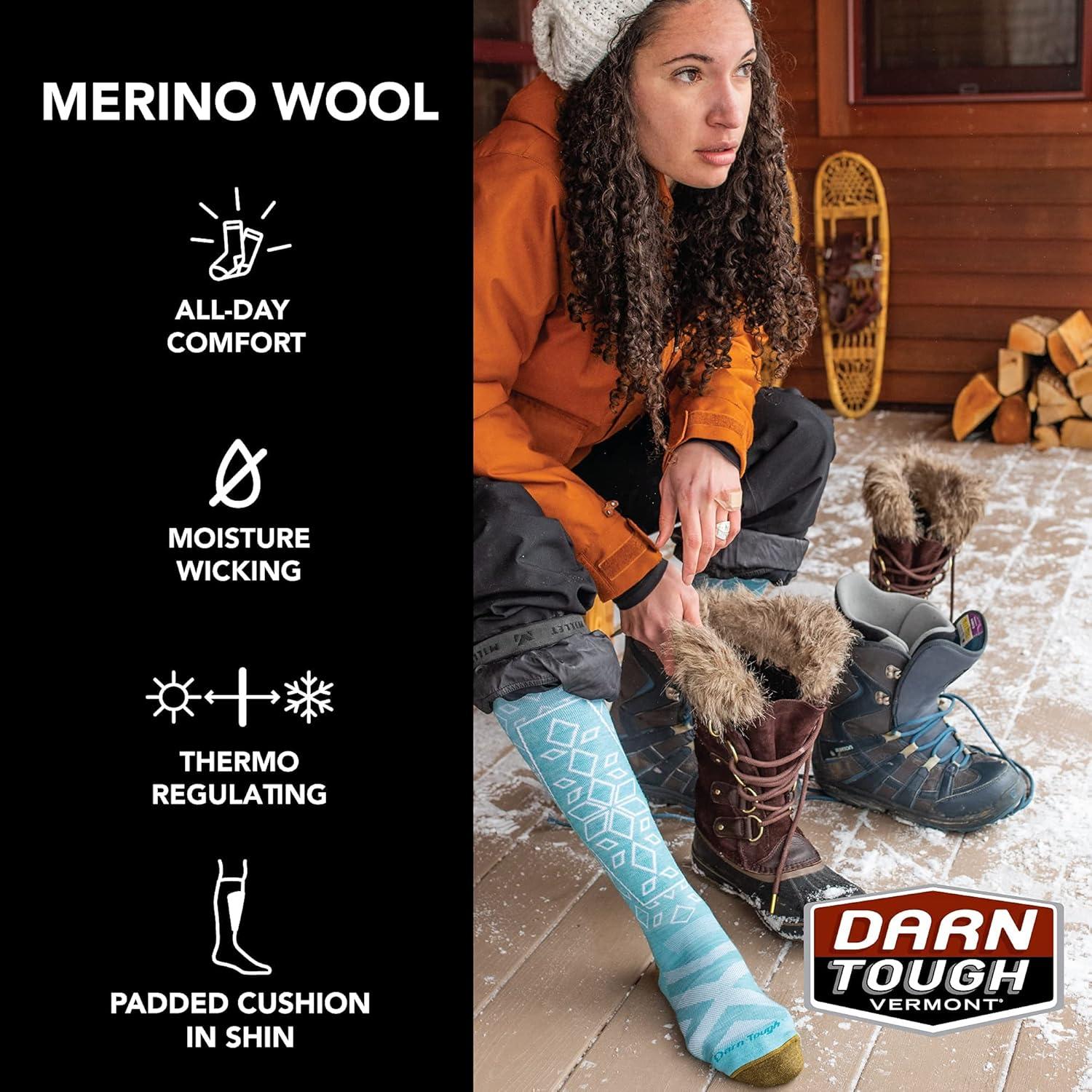 Darn Tough Women’s Traverse OTC Lightweight with Padded Shin Ski and Snowboard Sock (Style 8022) -(Aqua)